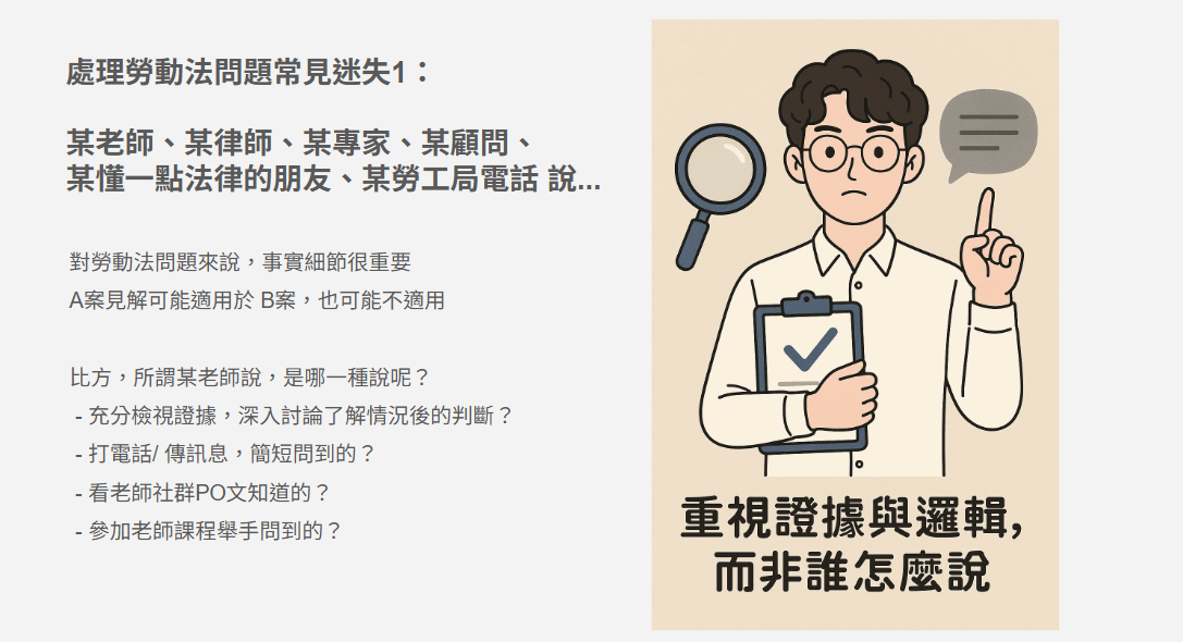 - 理解常見勞動法規背後的制度設計,建立基本判斷標準。